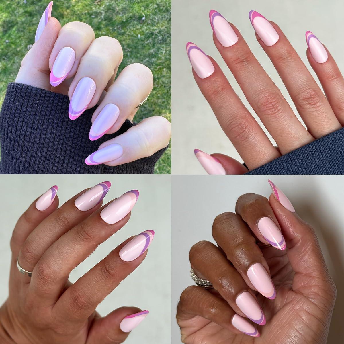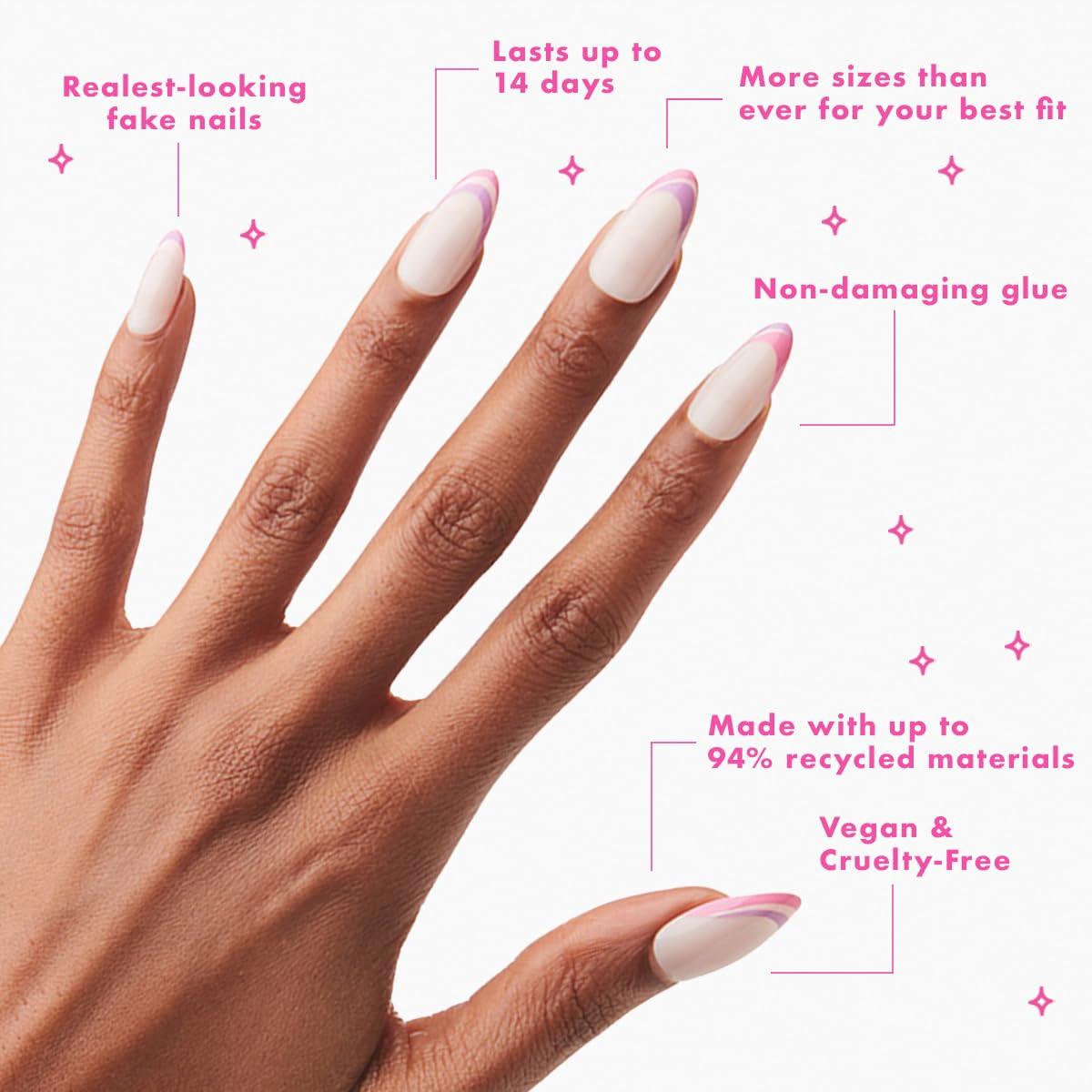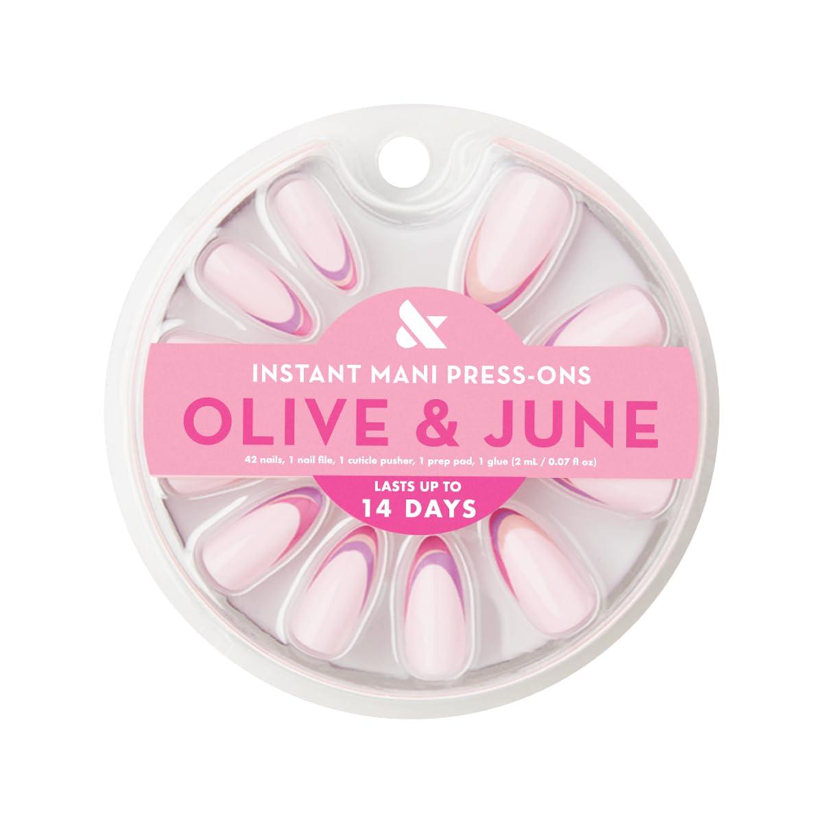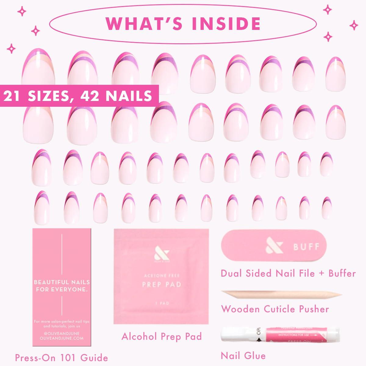 Olive & June Instant Mani Press On Nails (Glue) | 42 Fake Nails, 21 Sizes | Non-Toxic, Long-Lasting | Recycled Materials | Realistic Look(Double French Twist)