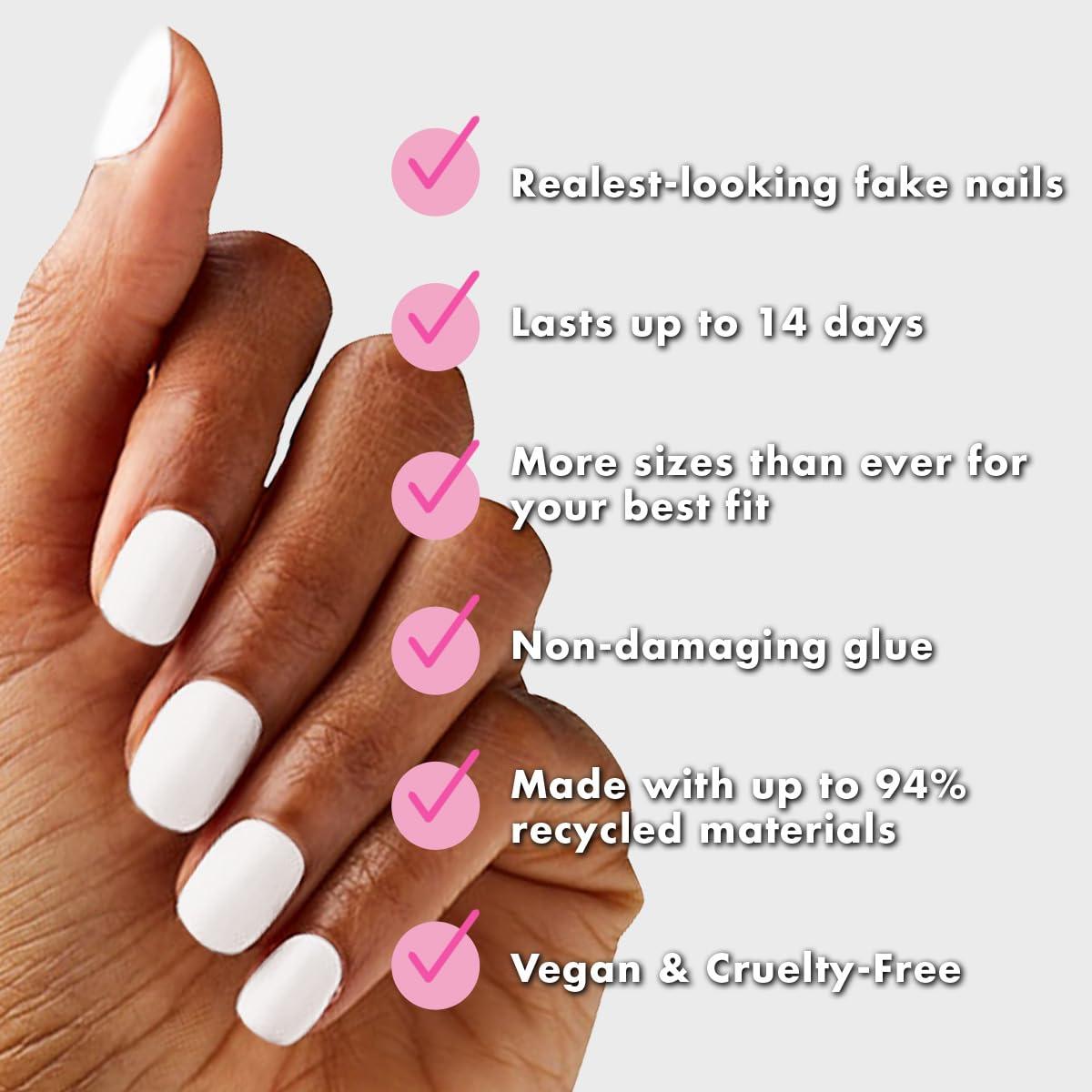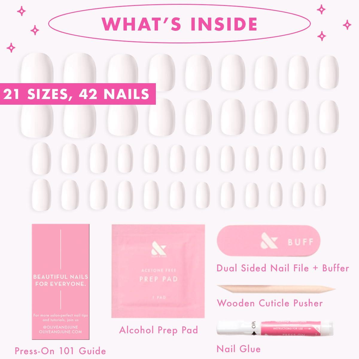 Olive & June Instant Mani Press On Nails (Glue) | 42 Fake Nails, 21 Sizes | Non-Toxic, Long-Lasting | Recycled Materials | Realistic Look(HD)