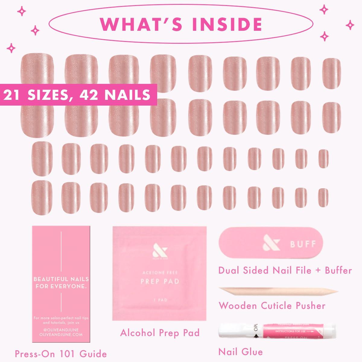 Olive & June Instant Mani Press On Nails (Glue) | 42 Fake Nails, 21 Sizes | Non-Toxic, Long-Lasting | Recycled Materials | Realistic Look(HZ Velvet)