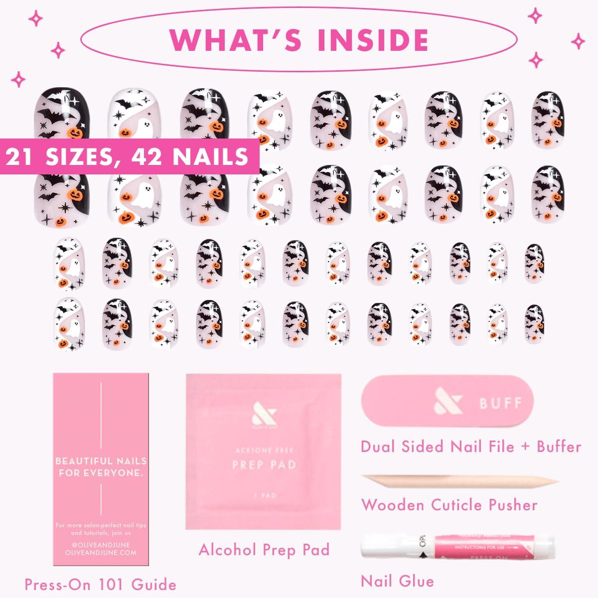 Olive & June Instant Mani Press-On Nails | Glue | Medium Oval | 42 Pieces, 21 Sizes | Non-Toxic, Long-Lasting Recycled Materials Realistic Look | Salon-Quality at Home | Halloween Party