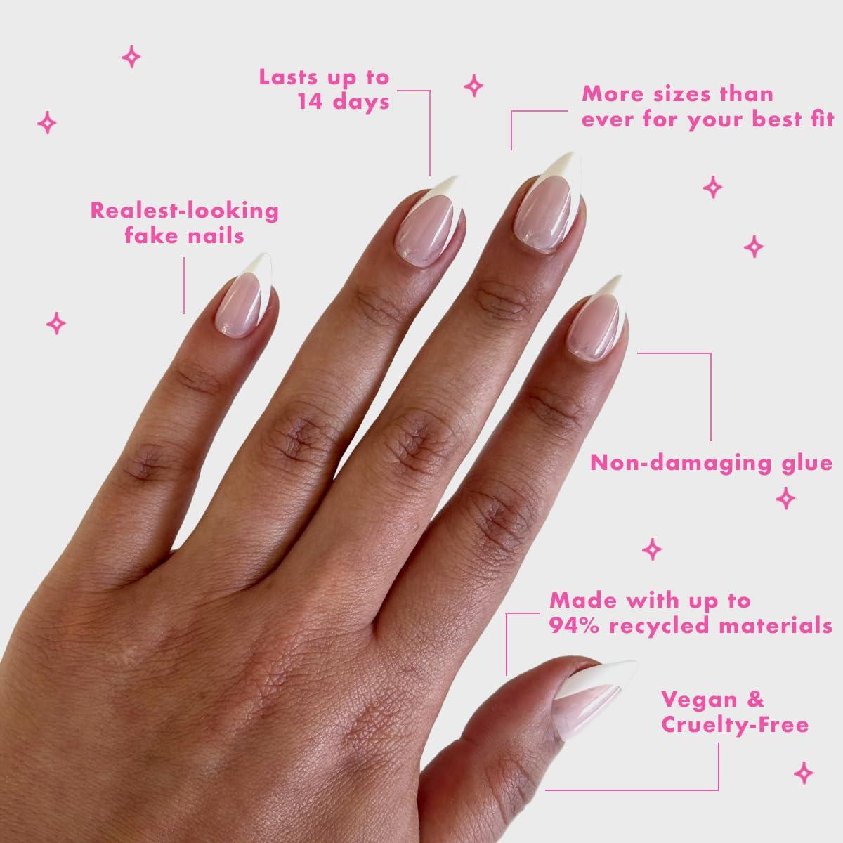 Olive & June Mani Maximalist Instant Press-On Nails | (Glue) Medium Stiletto | 42 Fake Nails 21 Sizes | Non-Toxic, Long-Lasting Big, Bold Gorgeous Realistic Look | Salon-Quality at Home | Sharp French(Sharp French)