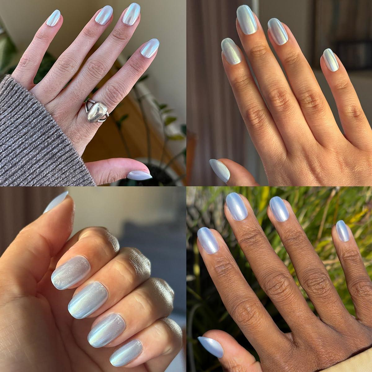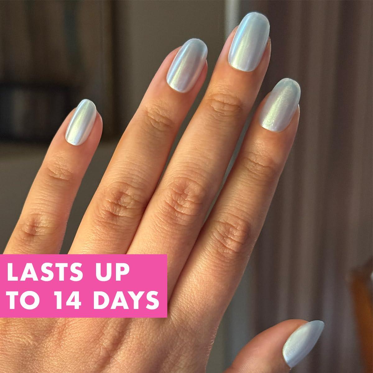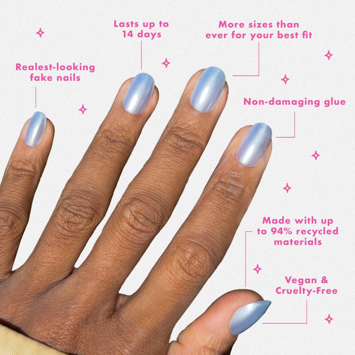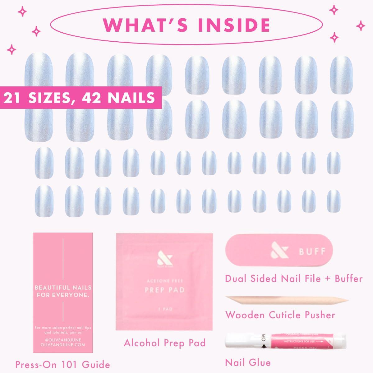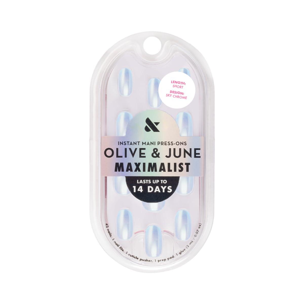 Olive & June Mani Maximalist Instant Press-On Nails | (Glue) Medium Stiletto | 42 Fake Nails 21 Sizes | Non-Toxic, Long-Lasting Big, Bold Gorgeous Realistic Look | Salon-Quality at Home | Sharp French(Sky Chrome)