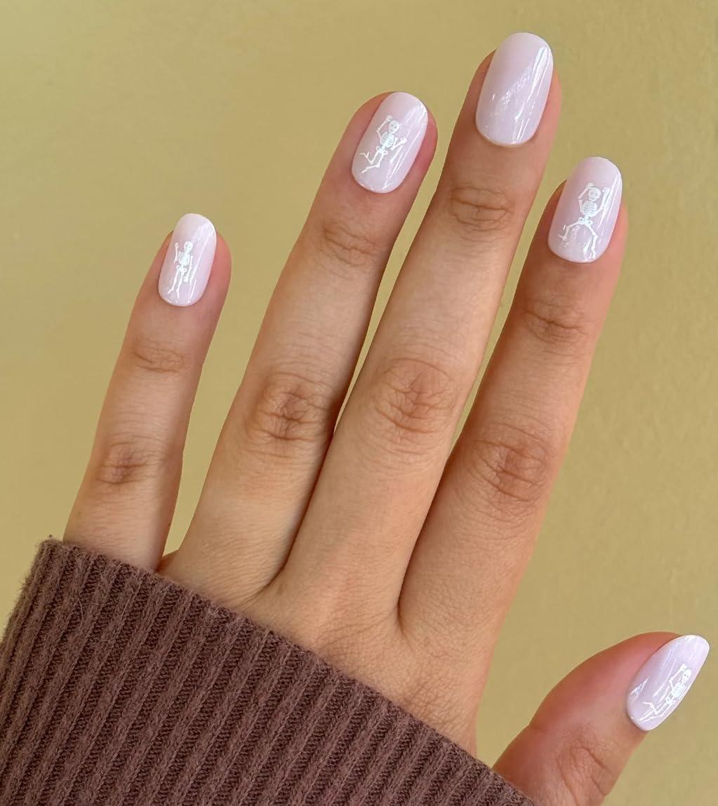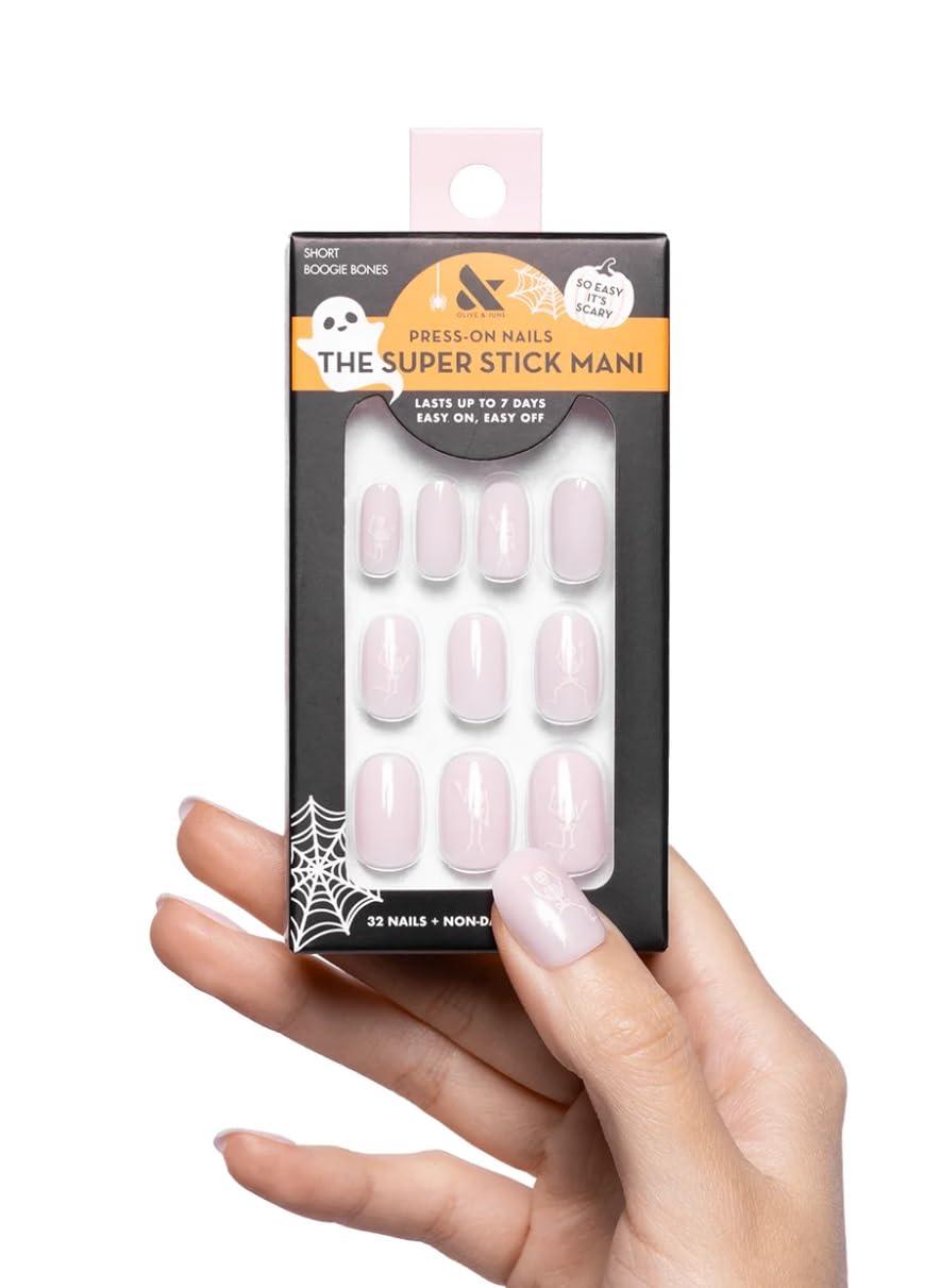 Olive & June Super Stick Mani Press-On Nails | Short Round |No Glue Needed | 32 Tab Nails, 16 Sizes, Last Up To 7 Days| Non-Toxic, Easy On-Off Non-Damaging | Halloween Boogie Bones(Boogie Bones)